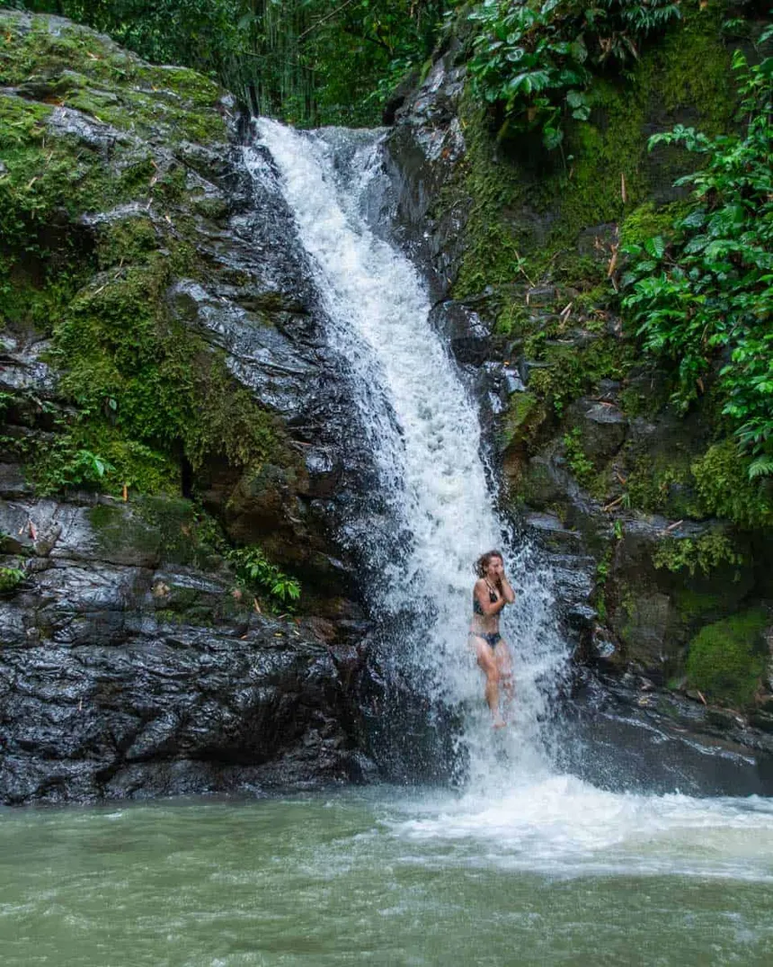 The Catarata Esmeralda Uvita butterfly garden is a highlight of the attraction, featuring a variety of colorful butterflies, including the iconic Blue Morpho species. Visitors can explore the enclosed garden, which is filled with plants that attract butterflies, creating a vibrant and serene environment. The trail leading to the waterfall passes through the butterfly enclosure, making it a convenient and enjoyable part of the visit.